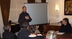 Der zweite Vortrag wurde vom brasilianischen Musikwissenschaftler und Komponisten Jan Goldenbaum gehalten, der auf Einladung der A.B.E. seine kurz zuvor in São Paulo uraufgeführte und auf CD aufgenommene "Symphonie des Guten" vorstellte und seine Konzepte erläuterte.